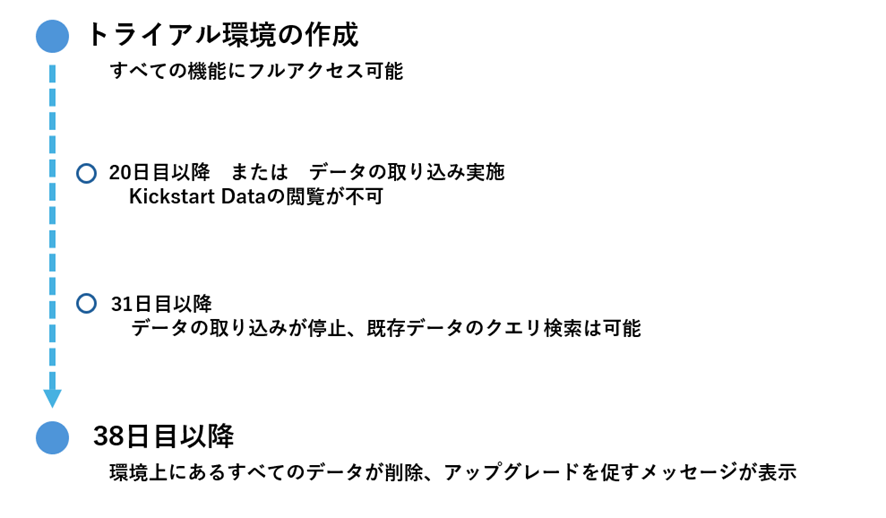 Kickstart Dataに関する部分については、トライアル環境作成から20日経過するか、トライアル環境にデータを取り込んだ時点から閲覧できなくなることにご留意ください。