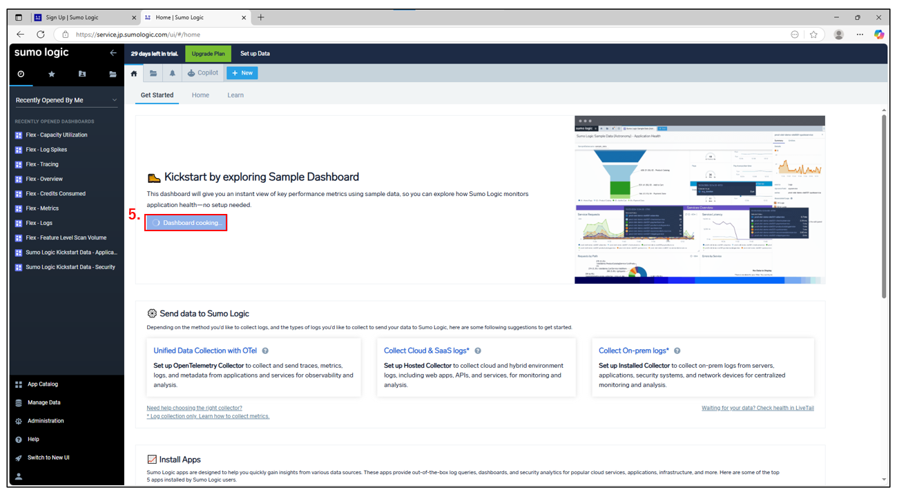 - ログインすると、Sumo LogicのGet Startedページが表示